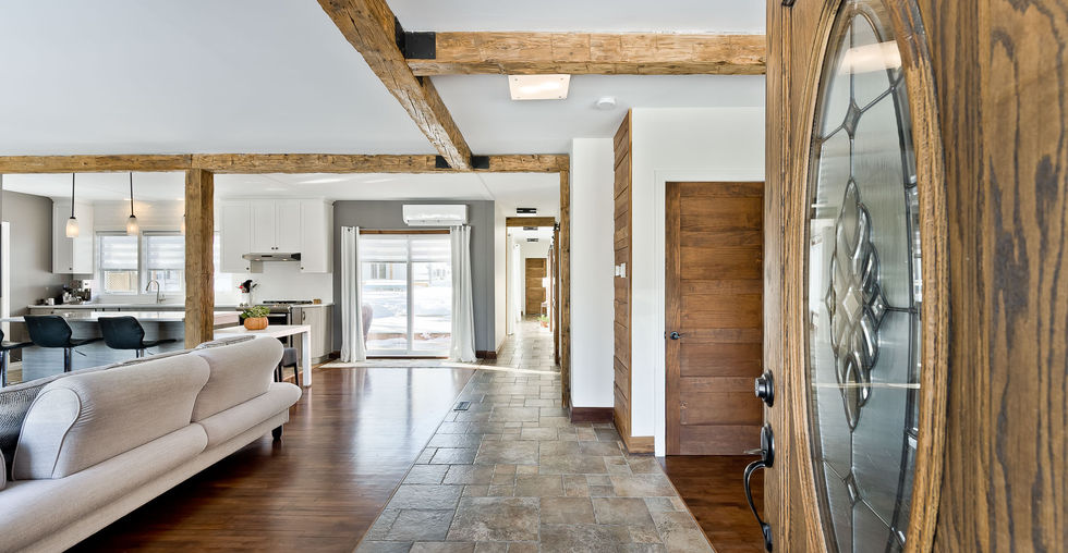En plein coeur de Lennoxville, cette maison a bénéficié de nombreuses améliorations et rénovations majeures au fil des années. Elle vous surprendra par ses volumes et la qualité de ses matériaux. Son aire ouverte lumineuse, avec poutres apparentes et grandes fenêtres, offre 1 994 pi² habitables sur l'étage principal uniquement. 3 chambres sur le même étage. 2 salles de bain + salle d'eau. Garage double 18 x 24. Sous-sol complet (salle familiale, immense rangement, salle de lavage et grand atelier). Cour orientée sud avec coin feu et plates-bandes florissantes. Confort assuré grâce à l'air pulsé et aux améliorations rénoclimat.